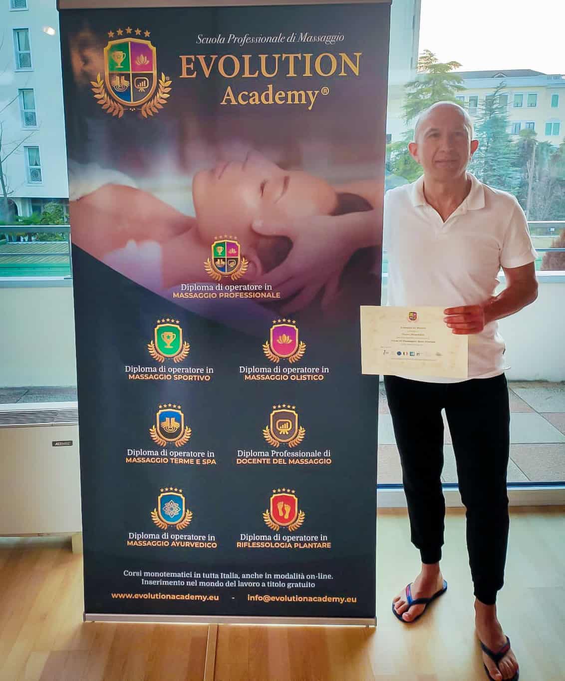 L’attestato di merito e l’attestato di aggiornamento saranno le certificazioni che riconosceranno la tua formazione con Evolution Academy®. Il primo sarà tuo se sarai ritenuto idoneo al termine della prova pratica. Il secondo invece, sarà tuo se parteciperai al ripasso gratuito del corso di massaggio vatabyangam. Potrai scegliere il weekend e la sede, se Pordenone o una più comoda.