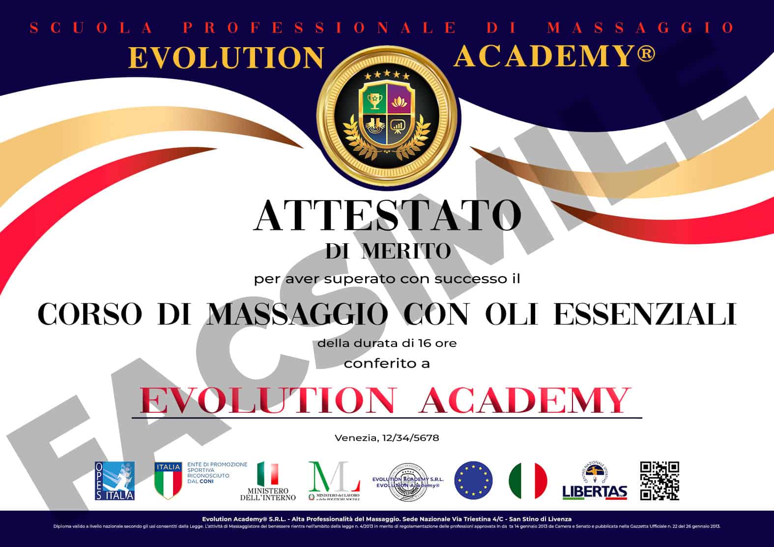 Alla fine del corso di massaggio oli essenziali, se avrai superato il test finale, ti verrà rilasciato un attestato di merito riconosciuto su tutto il territorio nazionale, ai sensi della legge 4/2013, approvata in data 14 gennaio 2013 da camera e Senato e pubblicata nella Gazzetta ufficiale nr 22 del 26 gennaio 2013. A seguito della partecipazione alle giornate di ripasso ti verrà rilasciato un attestato di aggiornamento.