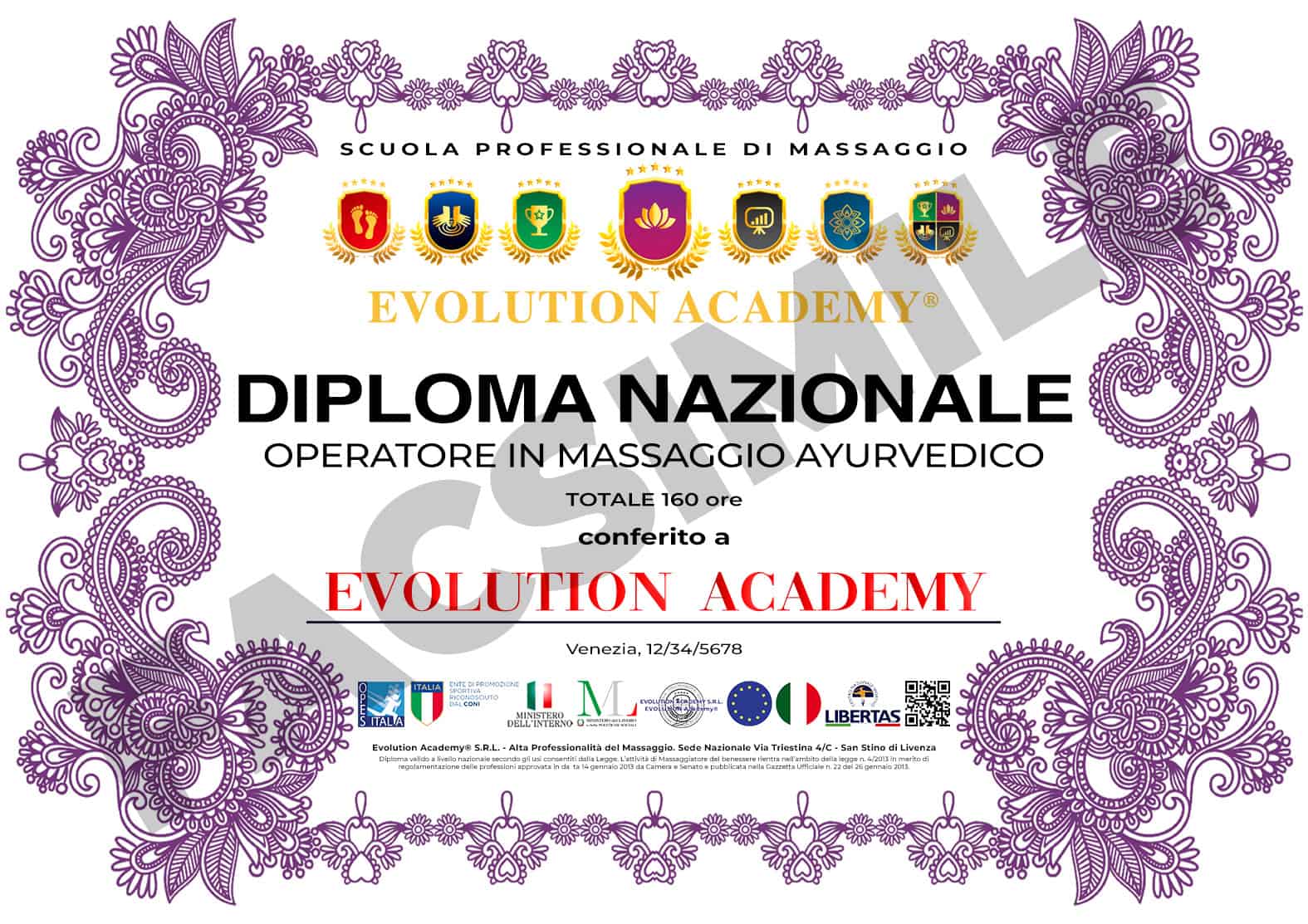 - N° 1 Diploma di Operatore in Massaggio Ayurvedico.