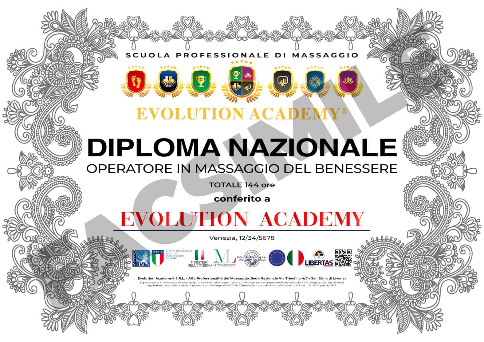 - N° 1 Diploma di Operatore in Massaggio del Benessere.