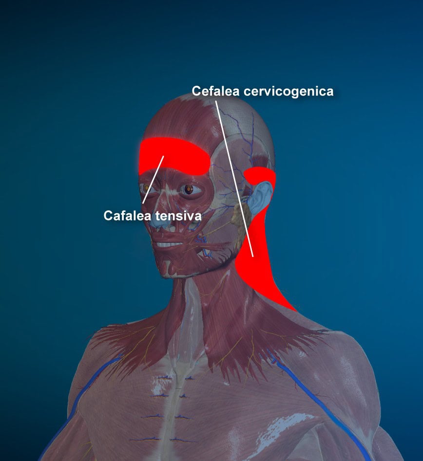 - Cefalea cervicogenica: il dolore parte dal collo e si irradia alla testa. Le principali cause sono: problemi cervicali, traumi al livello del collo e tensioni muscolari nelle zone coinvolte.